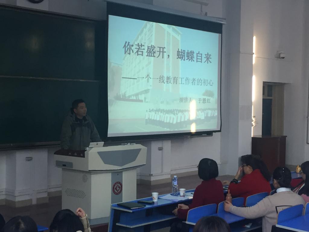 11月1日下午16点30分,宝鸡新希望中学董事长于恩红应邀来best365中国官方网站作了题为《你若盛开,蝴蝶自来——一个一线教育工作者的初心》的报告。部分师生近200人聆听了报告。报告由副经理史传龙主持。