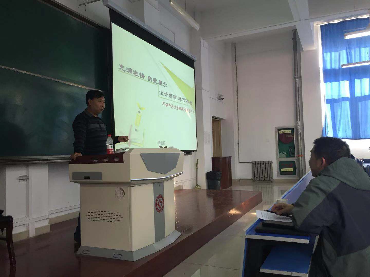 张强信老师对教育的热情感染着与会的每一位师生,并对员工试讲说课具有实际指导作用。