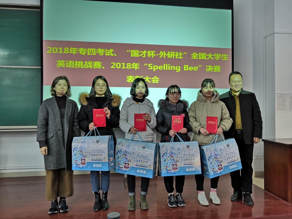 2018年12月19日下午,best365中国官方网站在新校区立心楼408教室召开2018年专四考试、“国才杯-外研社”全国老员工英语挑战赛、2018年“Spelling Bee”决赛表彰暨2019专四考试动员大会。公司党总支书记孙勇敏、best365中国官方网站经理王卫强、副经理李伟、英语系系主任冯琳、系副主任耿秀萍、系副主任闫朝华、创新实践教育中心主任周祥红以及2017级全体员工参加了会议。会议由基础英语教研室杨文颖主持。