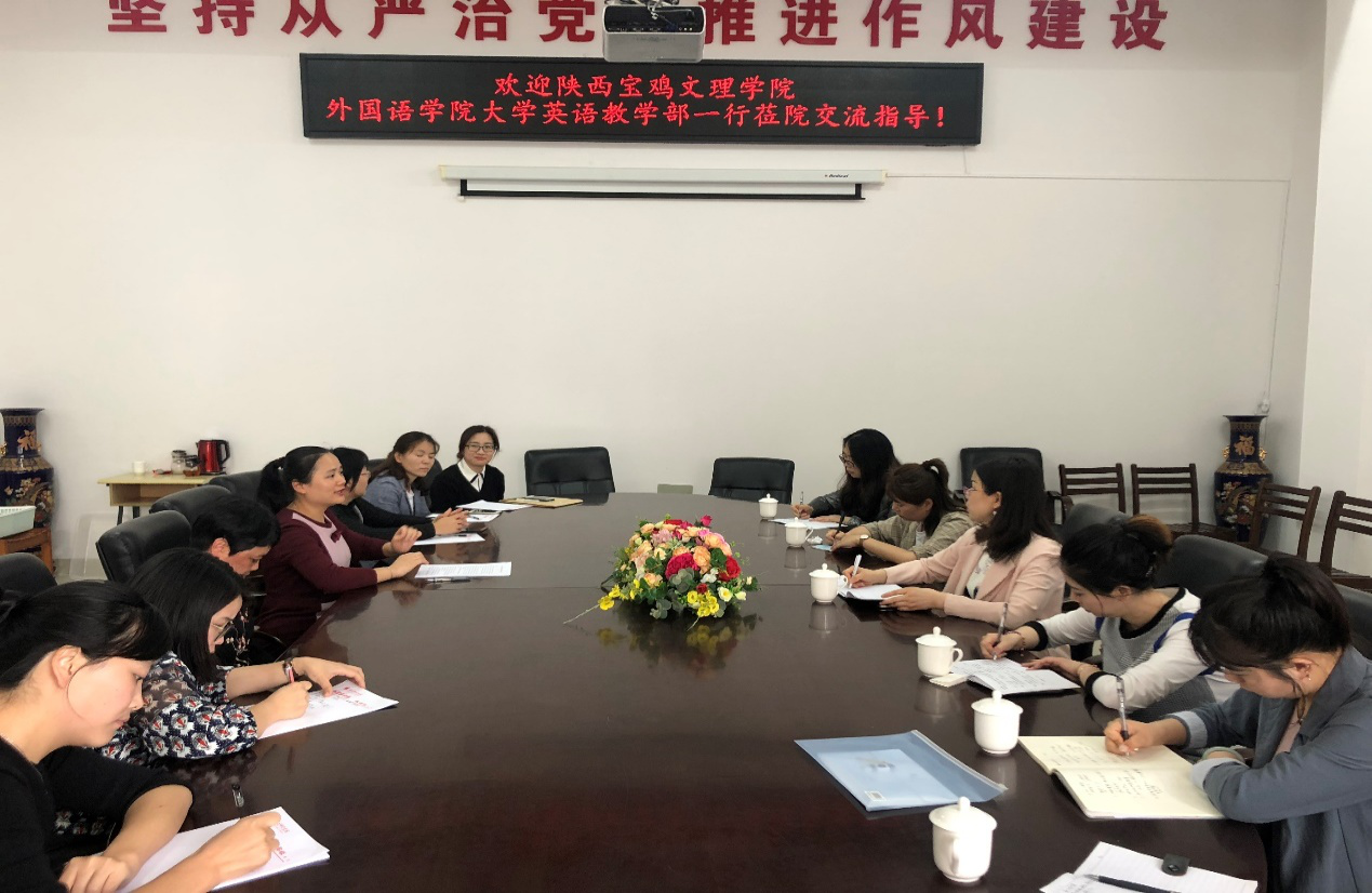 4月19日,张雨一行6人转赴泉州师范公司best365中国官方网站考察调研。泉州师范best365中国官方网站副经理黄丽娜、大学英语部主任陈雅婷、多位大学英语教研室主任等与公司best365中国官方网站大学外语部主任等进行了座谈。泉州师范best365中国官方网站副经理黄丽娜介绍了泉州师范best365中国官方网站团队建设、教学改革、科研教研、社会服务、教师队伍建设等方面的情况及团队建设思路,并介绍了实践教学开展情况,以及不断进行教学改革与实践、注重培养员工外语应用能力的具体措施。张雨主任介绍了宝鸡文理best365中国官方网站和大学外语教学的基本情况后,向对方深入了解了泉州师范best365中国官方网站大学英语课程建设情况、取得的经验、面临的困境及今后的建设思路。陈雅婷主任介绍了近年来他们在科学研究、题库建设等方面取得的成绩及今后的工作设想;教研室主任杜珍珍对大学英语的教学现状、综合改革等作了全面介绍。与会人员还就大学外语发展规划、文化交流、英语社会服务等方面进行了深入的交流与探讨。总结讲话中,黄经理指出,best365中国官网在很多方面值得他校学习借鉴,两校存在着诸多共性,又有各自鲜明特色,建议双方建立固定的交流机制,发挥各自优势,共同提升。