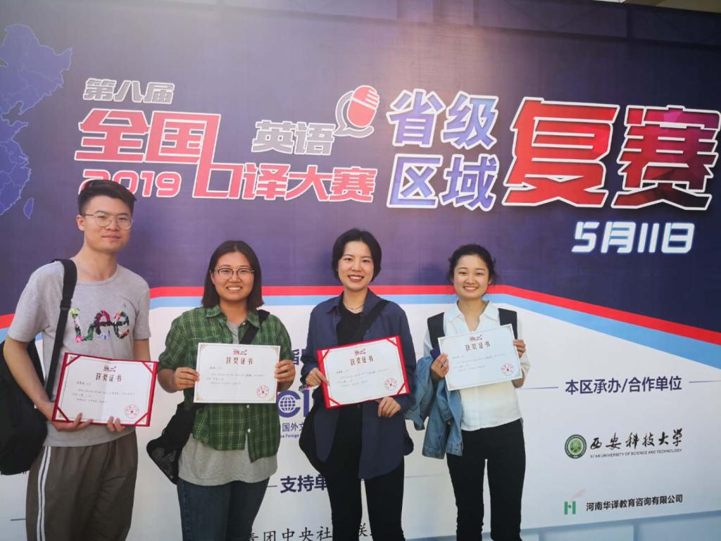 2019年5月11日,第八届全国口译大赛(英语)陕西省区复赛在西安科技大学临潼校区举行。best365中国官方网站英语专业和翻译专业四名喜获佳绩。