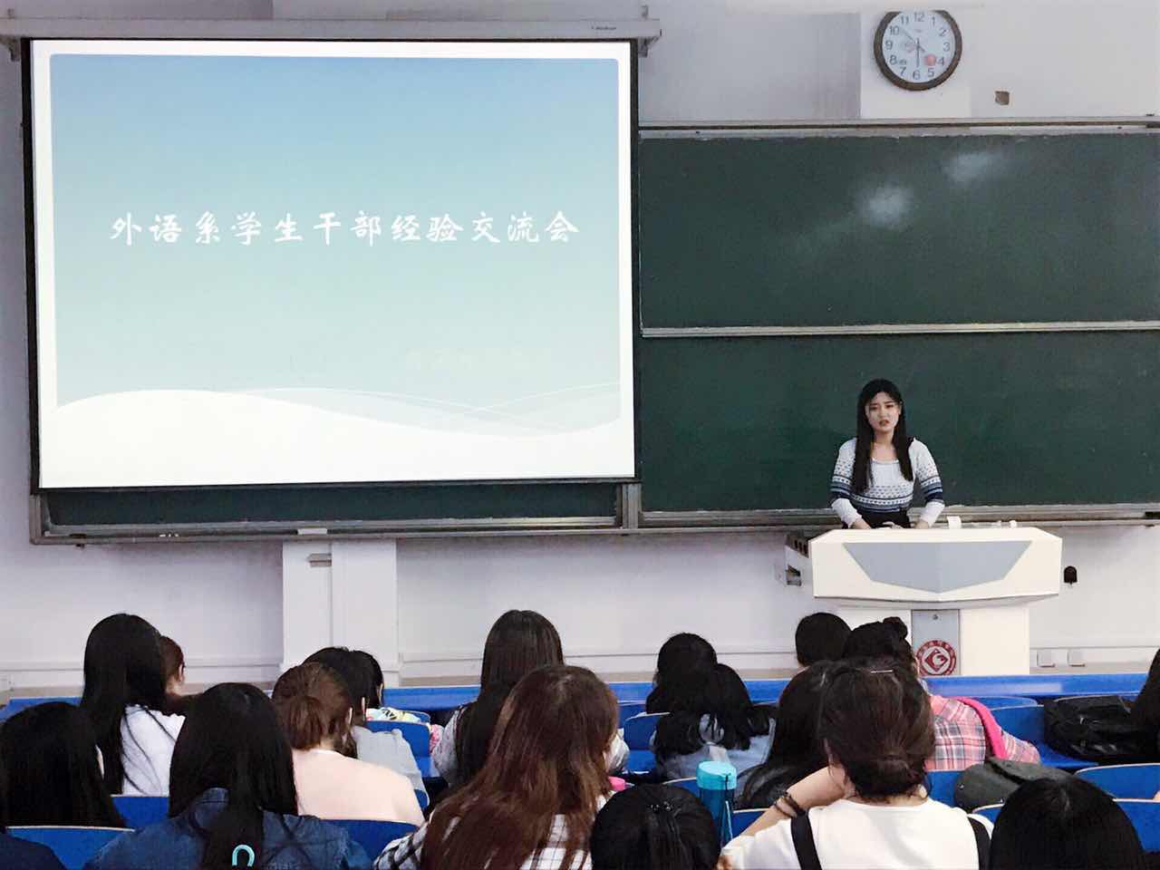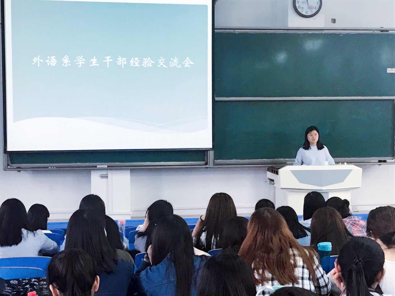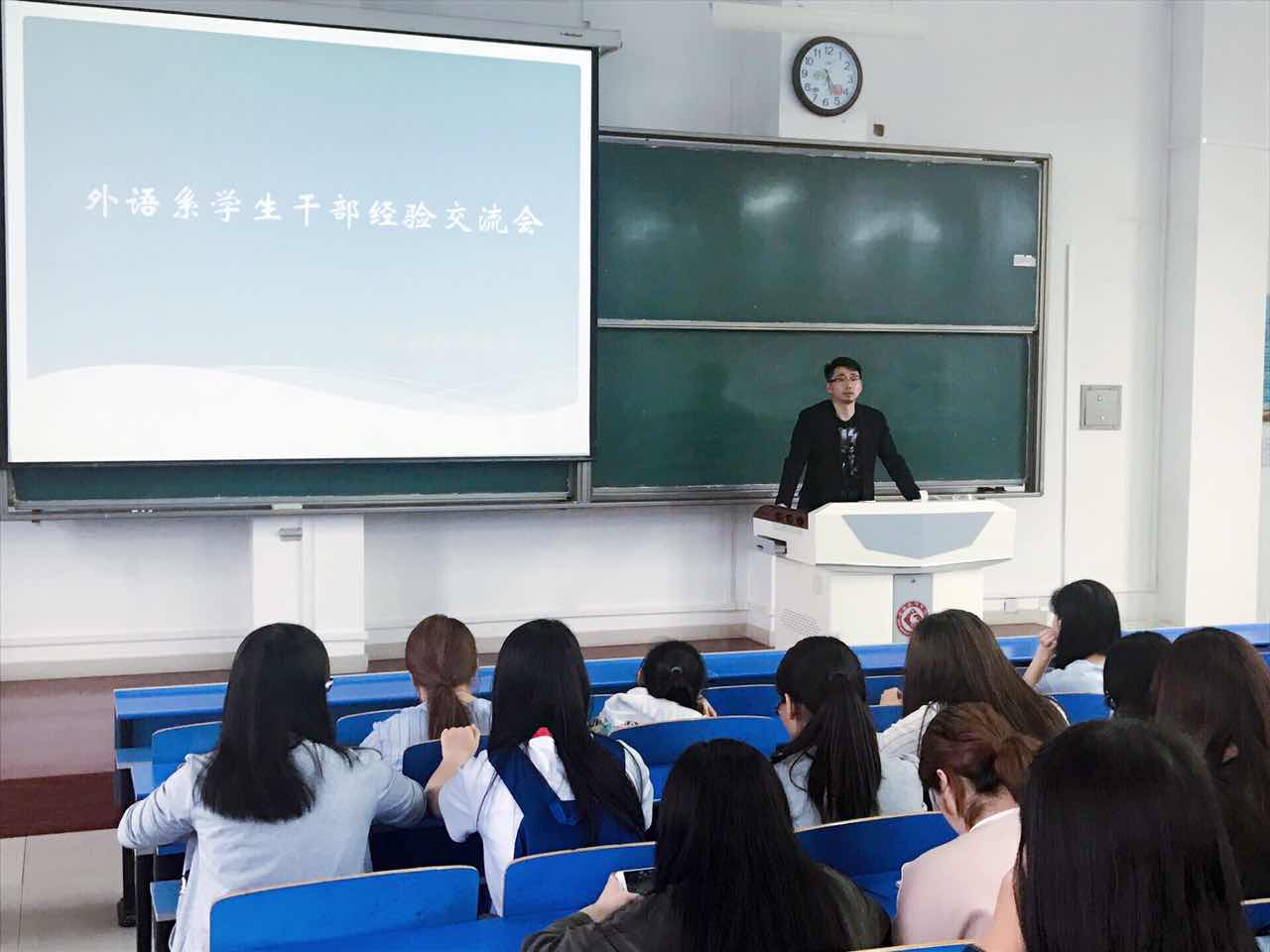 5月10日下午,外国语言文学系在立心楼420教室举办员工干部经验交流会,会议由系团总支书记段振业主持,