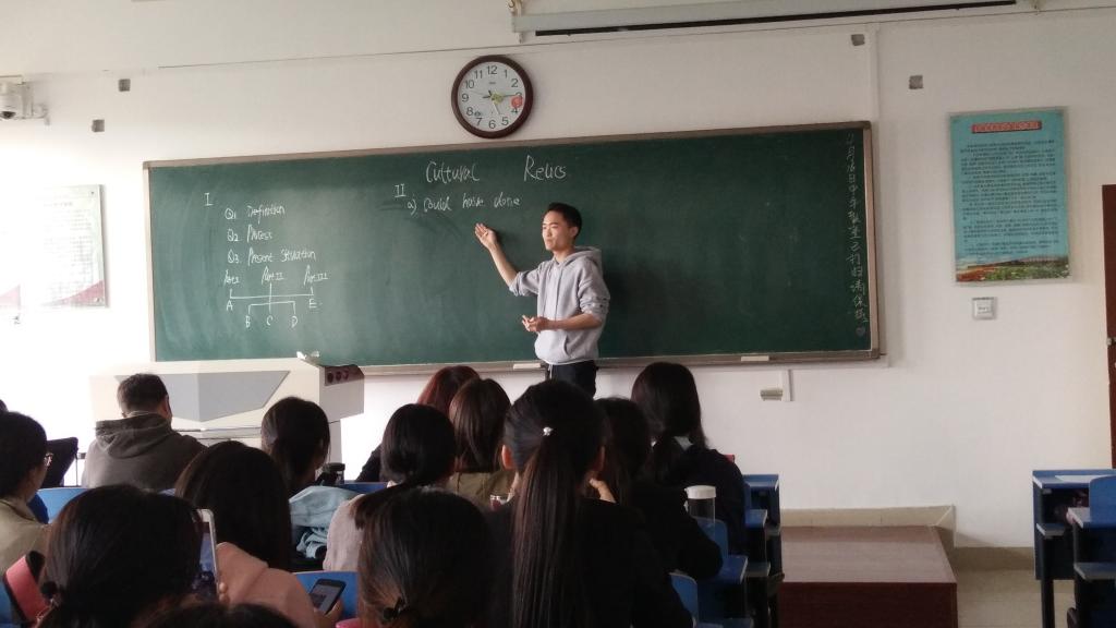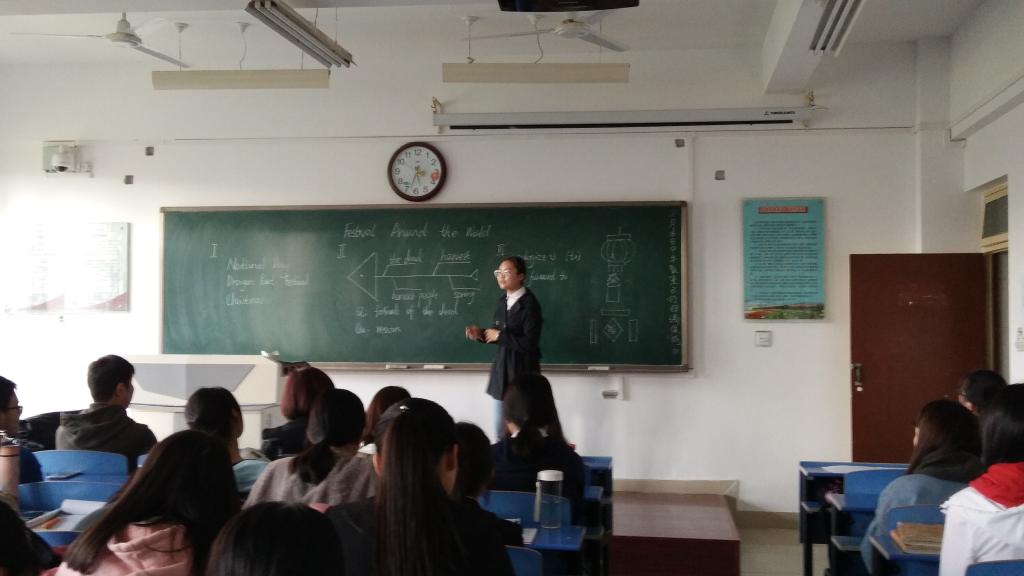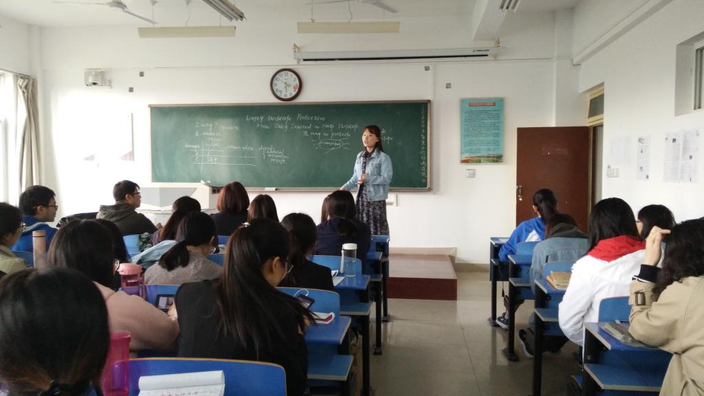 为提高英语专业人才培养质量,强化实践教学环节,提升师范生教学水平,4月16日下午,best365中国官方网站在立心楼举办了2015级师范生教学技能大赛。best365中国官方网站副经理李伟和各教研室的骨干教师担任比赛评委,200余名员工观看了比赛。