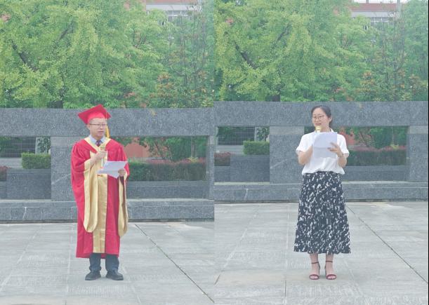 仪式在庄严的国歌声中开始。李伟首先宣读了2025届学位授予决议。伴随着《加冕进行曲》,李伟为毕业生逐一扶正流苏,冯琳为获得学士学位毕业生颁发学位证书,刘敏为获得硕士学位毕业生颁发学位证书。