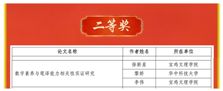 近日,首届“外教社杯”全国高校外语教师教研论文大赛圆满落幕,获奖名单正式揭晓,公司best365中国官方网站教师徐新星、李伟等的论文《数字素养与笔译能力相关性实证研究》荣获全国二等奖。