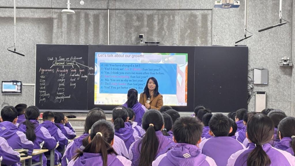 见习活动以观摩一堂常态示范课为核心。高新一中李红莉老师以人教版八年级英语Unit 3 Same or Different Project部分为教学载体,呈现了一节兼具实用性与示范性的课堂。授课过程中,李老师紧扣Project板块“综合语言运用”的教学目标,以任务驱动为核心设计教学环节。活动前,李老师利用本班员工一年来公司活动视频导入,并通过图片对比引出本课主题。授课中,李老师从具体学情出发拆解项目主题,组织员工通过个体活动、同伴活动梳理核心词汇与句型,逐步完成“主题讨论-内容构思-成果呈现”的项目流程,既注重员工语言输出的准确性,又关注合作探究能力的培养,充分展现了“以员工为中心”的教学理念与扎实的教学基本功。
