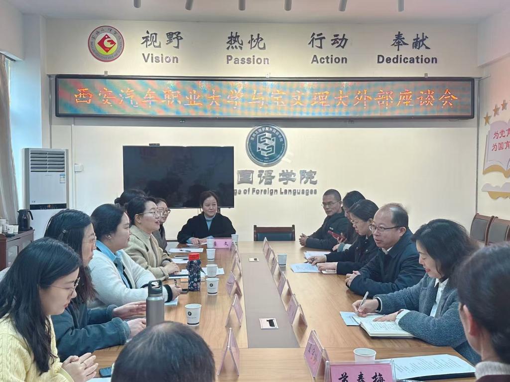 为推动高校外语教学改革与实验室建设的经验共享,12月5日,西安汽车职业大学文理公司外语公司副经理靳艳、外语教研室主任牛璐芳一行七人来公司开展专题调研。best365中国官方网站经理李伟、副经理冯琳、英语系主任王宇珍、大学外语教学部主任张雨和部分教师代表参加了座谈。