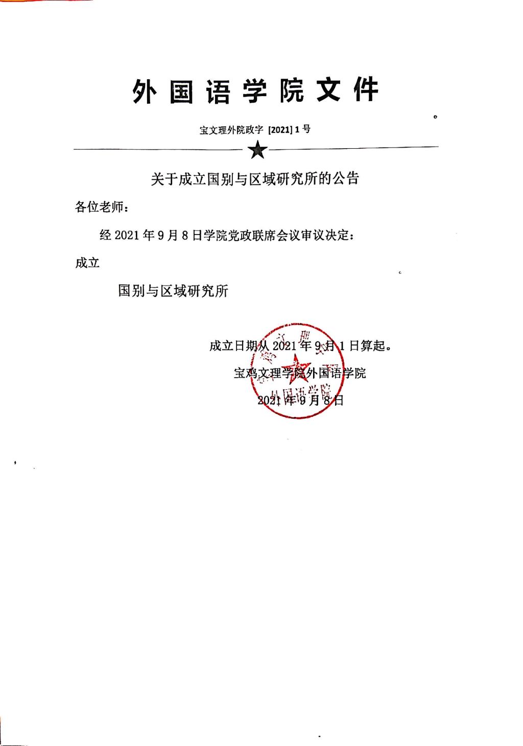 关于成立国别与区域研究所的公告