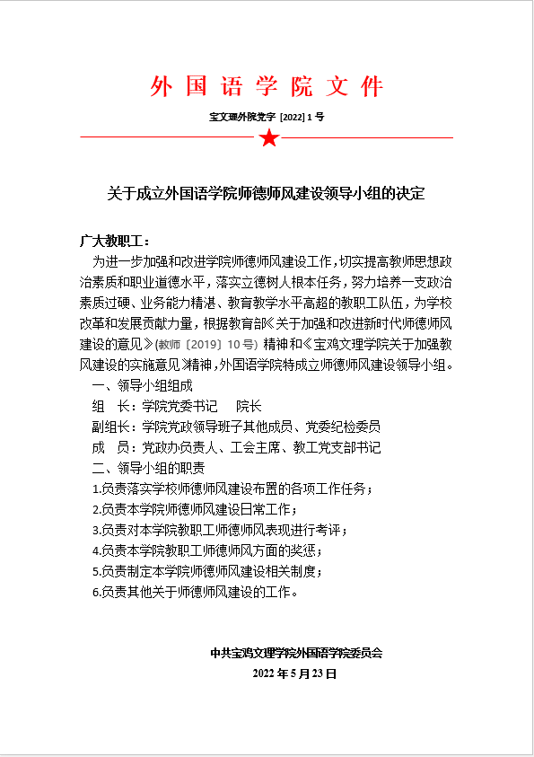 关于成立best365中国官方网站师德师风建设领导小组的决定