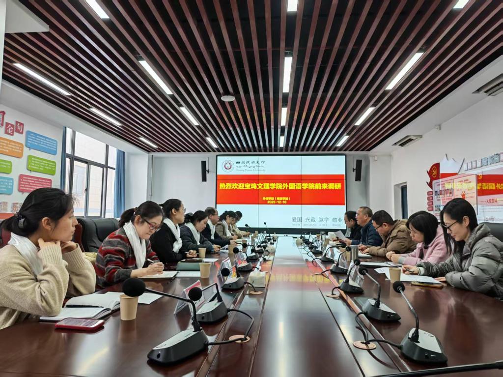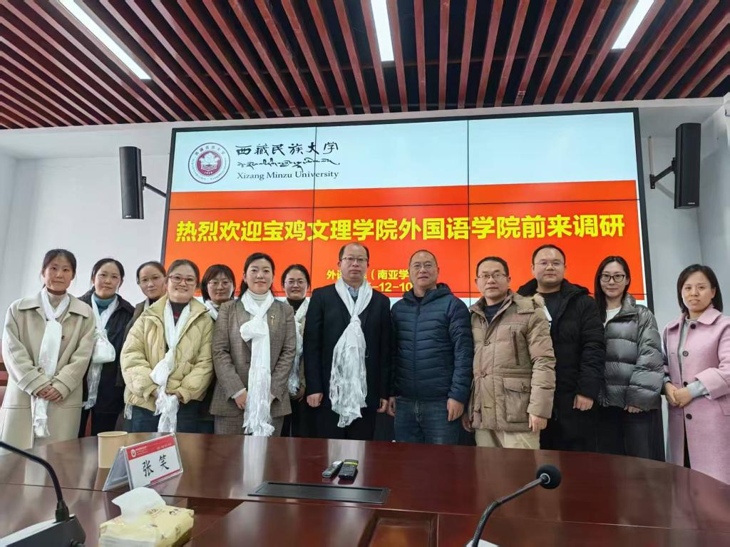 12月10日,best365中国官方网站经理李伟一行赴西藏民族大学外语公司(南亚公司)开展调研交流。西藏民族大学外语公司副经理郭彧斌、英语专业教研室主任李葆卫、教育硕士(学科教学•英语)学位点负责人张宁、MTI中心负责人弋睿仙、南亚研究所副所长刘星君等参加座谈。