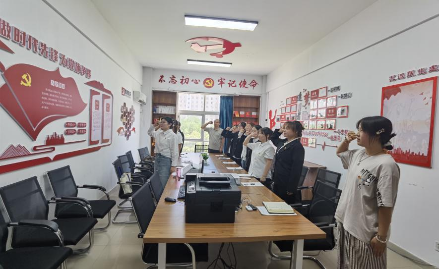 为庆祝中国共产党建党104周年,6月27日下午, best365中国官方网站在立心楼401党员活动室隆重举行新党员入党宣誓仪式,仪式由党委副书记、副经理杨子祁主持。